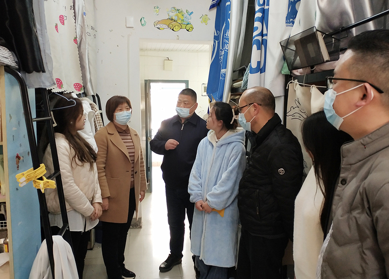 为全面深入了解学生返校期间的学习生活情况,落实落细学生管理工作,3月3日下午,云顶娱乐城 党委书记朱小娟,院长陆国君,云顶娱乐城 党委副书记、副院长陈俊怀,副院长徐托带领全体辅导员深入学生宿舍,走访看望返校学生,查看学生宿舍情况。