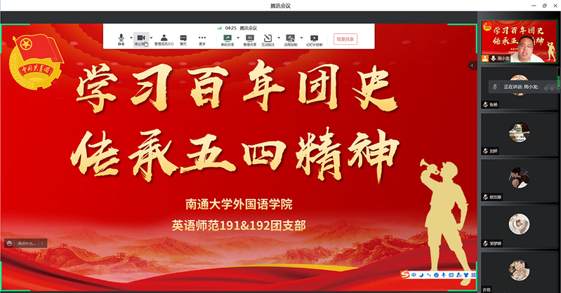 为深入学习习近平总书记在中国人民大学考察时的重要讲话,进一步弘扬五四精神,以更加昂扬向上的姿态迎接党的二十大召开,4月25日至5月4日,外国语云顶娱乐城 组织各团支部通过腾讯会议、QQ群、微信群等平台,开展“喜迎二十大 奋进新征程”主题团日活动。