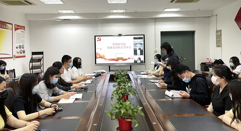 5月30日下午,外国语云顶娱乐城 召开预备觉员转正答辩会,答辩会以线上线下相结合的方式进行。