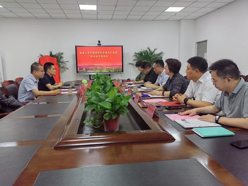 为促进校企合作,推动就业工作,加强应用型外语人才培养,5月23日上午,云顶娱乐城-云顶网上赌场 与译国译民集团开展校企合作座谈会。外国语云顶娱乐城 党委书记朱小娟,院长、党委副书记佘军,党委副书记、副院长陈俊怀,副院长吕雪峰,翻译系主任曹雁华,学工办主任王媛媛以及译国译民集团总经理林世宾,译国译民集团高校事业部华东区域总监陈佐鹰出席了座谈会。