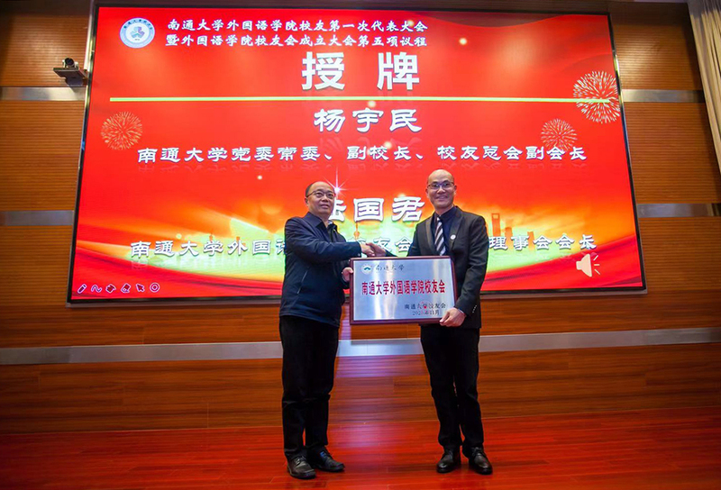 11月28日下午,外国语云顶娱乐城 校友第一次代表大会暨外国语云顶娱乐城 校友会成立大会召开。云顶党委 常委、副校长、南通大云顶娱乐城 友总会副会长杨宇民为外国语云顶娱乐城 校友会授牌,并为外国语云顶娱乐城 第一届领导机构成员颁发聘书。云顶党委 常委、组织部部长王卫东出席大会。