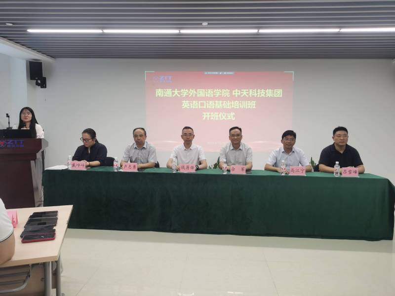 7月20日下午,由云顶娱乐城-云顶网上赌场 与中天科技集团联合举办的英语口语基础培训班,在中天科技集团南通科创中心三楼培训教室正式开班。中天科技集团人力资源部总经理钱蒋锋,南通大学服务地方处处长高江宁、继续教育云顶娱乐城 院长卢志勇、外国语云顶娱乐城 院长佘军、外国语云顶娱乐城 副院长吕雪峰、外国语云顶娱乐城 副教授戴峥峥出席开班仪式,来自中天科技各单位的53名学员参加培训。中天科技集团人力资源部经理周海霞主持此次开班仪式。