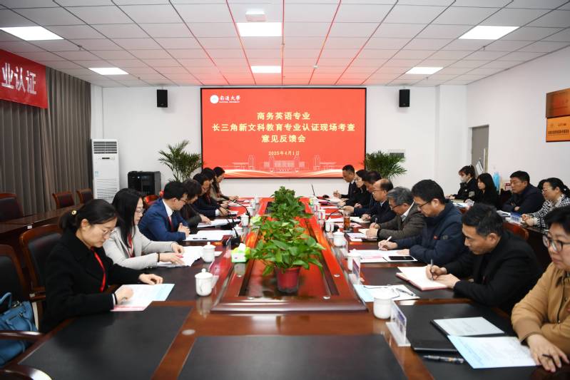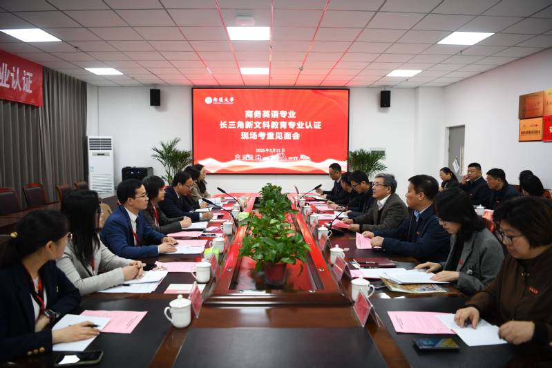 3月30日至4月1日,根据长三角新文科教育专业认证联盟安排,由上海财经大学韩冬梅教授为组长,上海对外经贸大学朱建明教授、华东师范大学陈俊松教授、华东理工大学陈丽教授、浙江传媒云顶娱乐城 王琳教授以及南通今日引擎信息科技有限公司常务副总袁晶晶为组员,上海应用技术大学教师欧阳晶晶为项目管理员的长三角新文科教育专业认证专家组一行7人,对云顶娱乐城 商务英语专业开展认证现场考查。云顶党委 书记、校长杨宇民,云顶党委 常委、副校长徐骏参加现场考查见面会、专家意见反馈会。