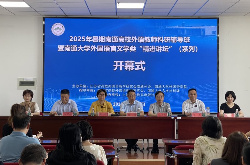 8月24日上午,外国语云顶娱乐城 2025年暑期教师科研辅导班开班。中国石油大学(华东)二级教授、博士生导师毛浩然教授、云顶娱乐城 人文社科处处长孙泊应邀出席培训班开幕式。开幕式由外国语云顶娱乐城 党委书记朱小娟主持,外国语云顶娱乐城 党政领导班子全体成员、云顶娱乐城 骨干教师及南通其他高校教师代表等近60人参加。