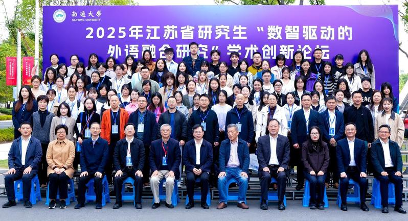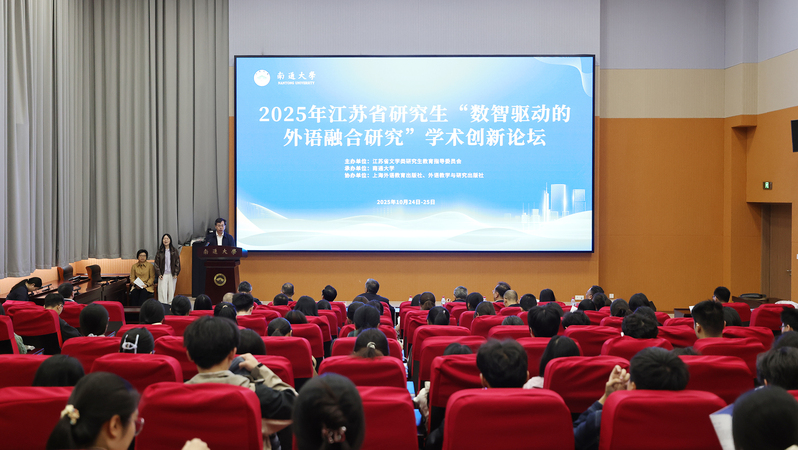 10月25日,2025年江苏省研究生“数智驱动的外语融合研究”学术创新论坛在云顶娱乐城 举办。论坛由江苏省文学类研究生教育指导委员会主办,南通大学承办,外语教学与研究出版社、上海外语教育出版社协办。南通大学党委常委、副校长、研究生院院长施佺,研究生院常务副院长、学科建设办公室主任吴丽,省内知名专家、学者出席开幕式。来自全国19所高校的100余名硕博研究生参加论坛。