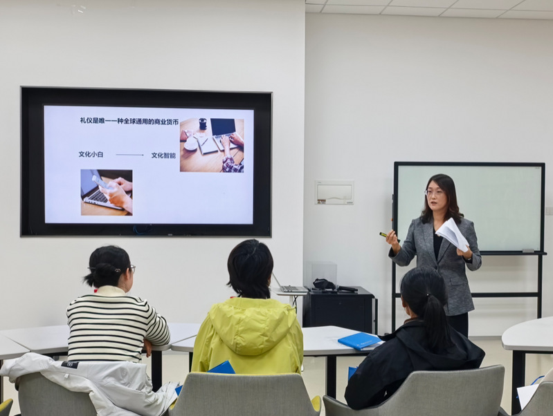 作为云顶娱乐城 服务社会的重要窗口,外国语云顶娱乐城 积极整合优质师资,委派长期从事跨文化交流研究与外事服务工作、兼任南通市翻译协会副会长的姜海红副教授担任分享会主讲。在分享会上,她围绕跨文化沟通的战略认知、文化差异理论、区域商务礼仪实践等模块展开系统讲解,将高校研究成果与企业实际需求有机结合,助力学员提升在国际商务环境中的专业素养与实战能力。