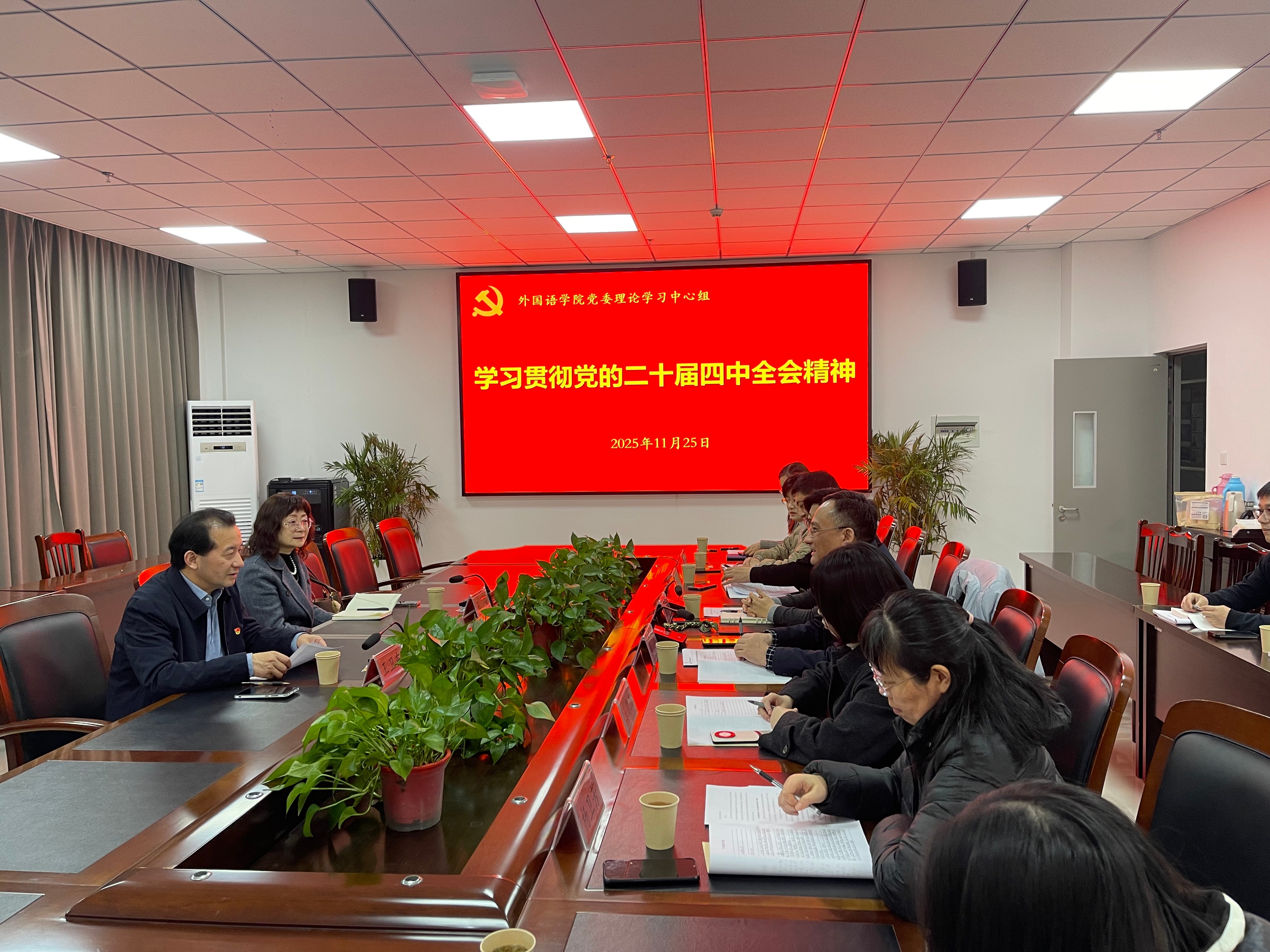 11 月 25 日下午,外国语云顶娱乐城 召开党委理论学习中心组学习会,专题学习党的二十届四中全会精神,研究部署云顶娱乐城 贯彻落实举措。云顶党委 副书记王卫东、校二级党组织理论学习中心组学习督导员王芳莅临巡学旁听,云顶娱乐城 党委书记朱小娟主持会议,中心组全体成员参会。