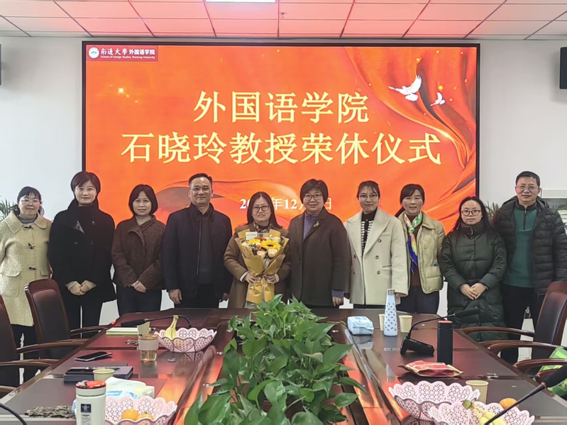 12月5日,外国语云顶娱乐城 为商务英语系石晓玲教授举办了一场温馨而隆重的荣休仪式。外国语云顶娱乐城 党政领导、云顶娱乐城 工会主席、办公室主任、商务英语教研室教师代表共同参加。仪式由商务英语系主任刘道影主持。