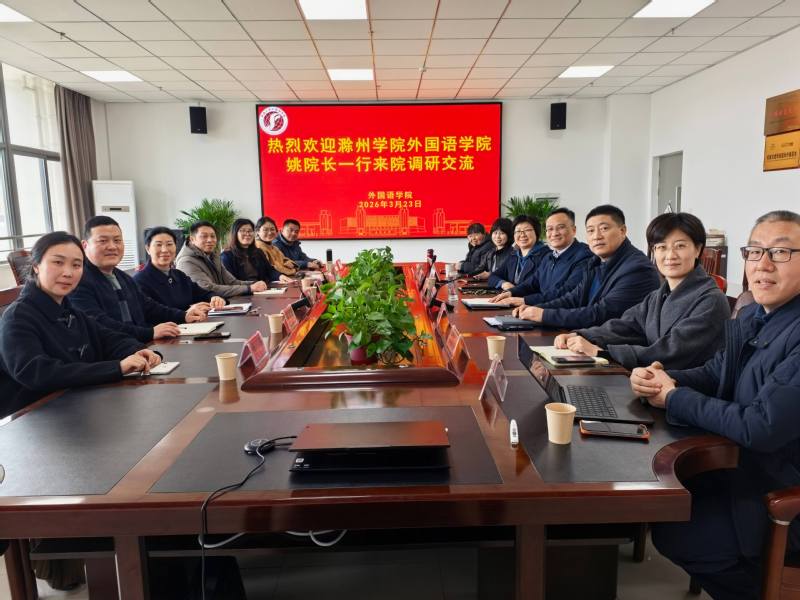 3月23日下午,滁州云顶娱乐城 云顶娱乐城 院长姚志英率队莅临云顶娱乐城 调研交流。云顶娱乐城 党委书记朱小娟、院长佘军等领导班子成员及各系部负责人出席座谈,双方围绕外语学科建设、人才培养等核心工作深入研讨、凝聚共识。